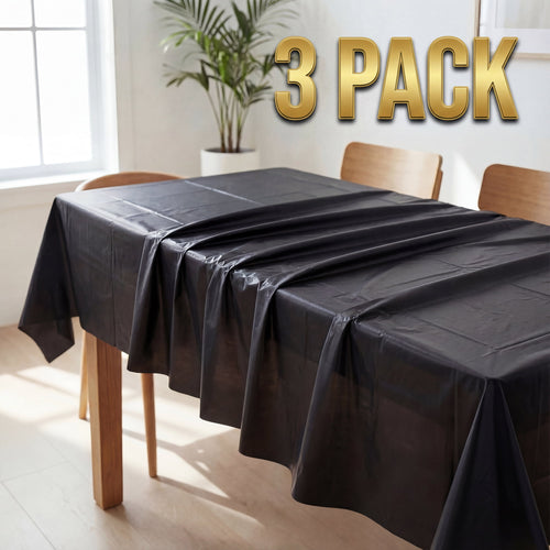 Plastic Table Cloth Disposable 3 Pack, 54 x 108 Inch, Black, for Party Picnic Wedding